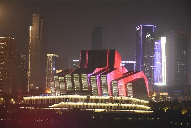 6号线大剧院轻轨站出去,就到大剧院,大剧院与洪崖洞隔江相望,渝中半岛景色尽收眼底,也能看到对岸嘉滨路沿线灯饰景观。